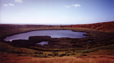 A picture of some Moi (big head statues, pronounced moe-eye). Right next to the rock quarry, also right next to the old lake (other lake is modern man-made).